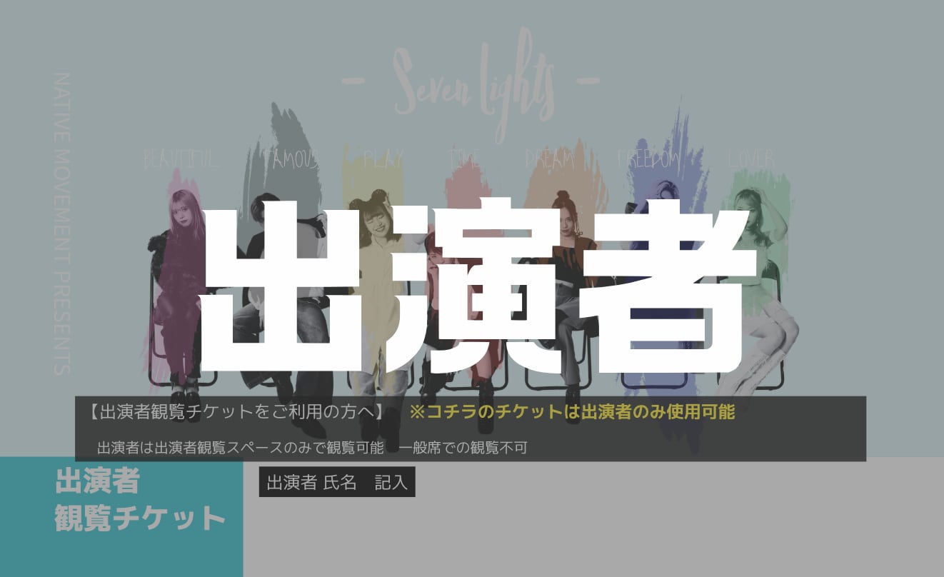 出演者の方がSeven Lights公演を観覧できるチケットです。